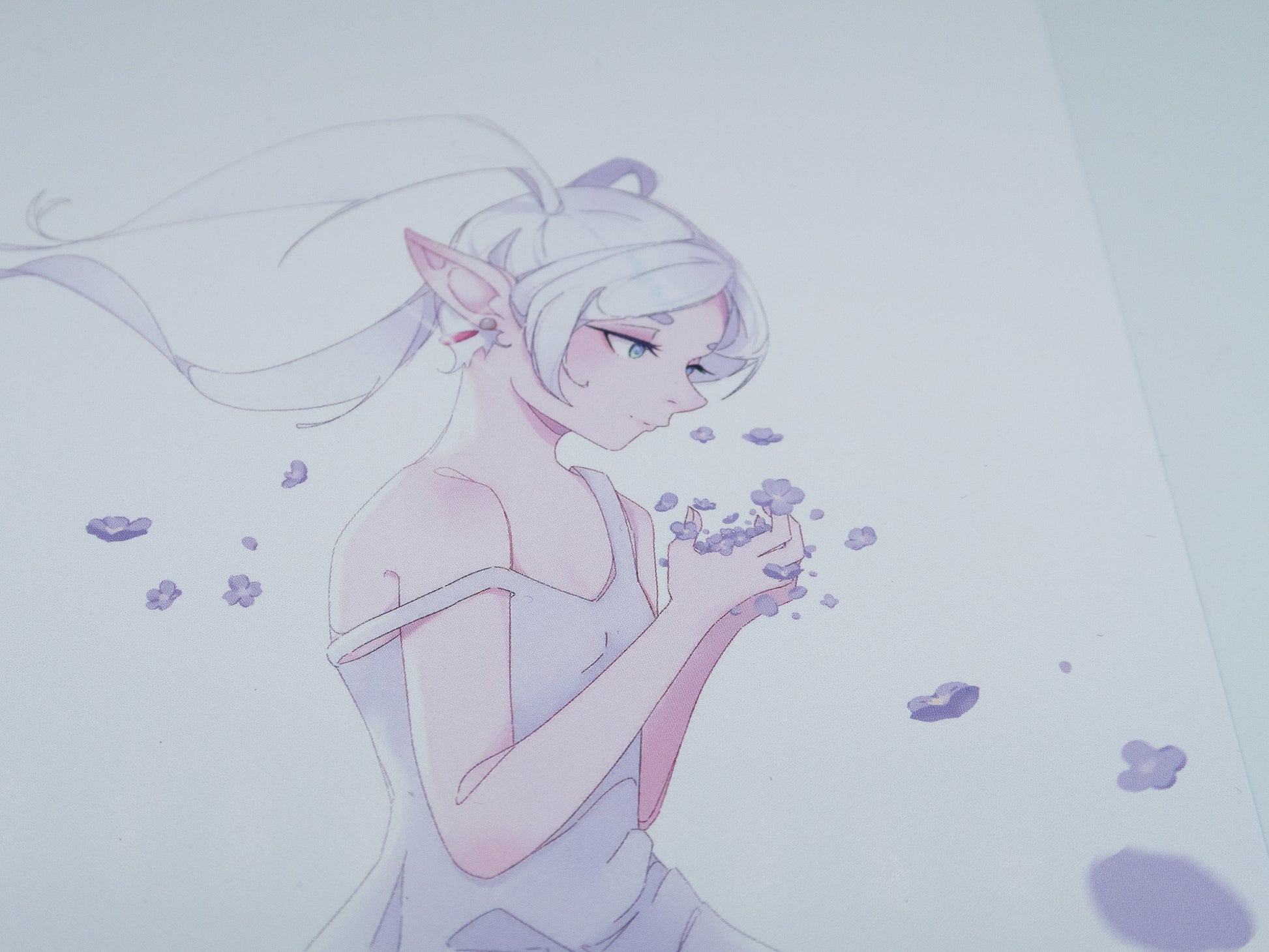 The paper is thick, soft at the touch and slightly shiny under light, highlighting the pure and calming side of the illustration.